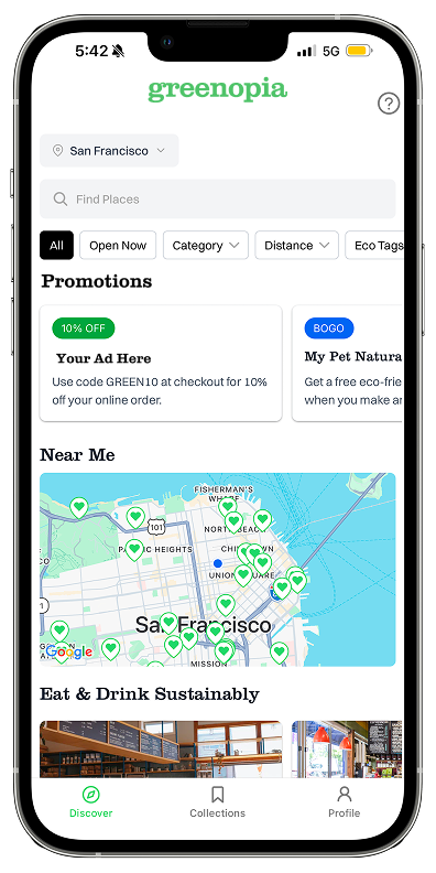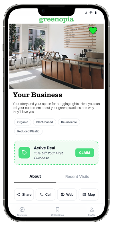 With our Premium Marketing Package you get direct access to eco-concious customers and get discovered more easily. Your offers and coupons are displayed at the high-traffic area in our app leading to more store visits and new happy and loyal customers. This and more is for just $10 per month!